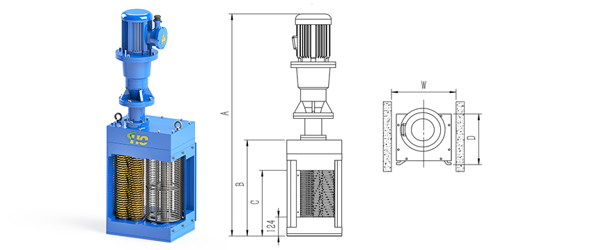 1.固體顆粒隨著污水進入轉(zhuǎn)鼓渠道式粉碎型格柵機;